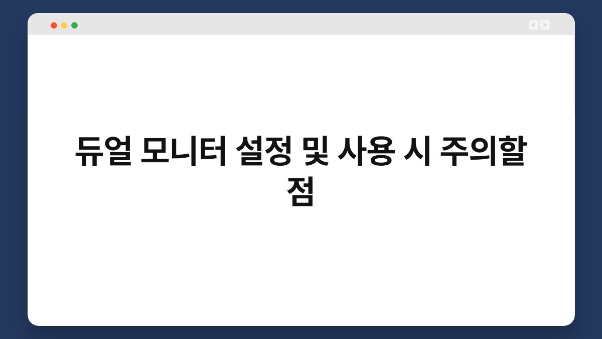 듀얼 모니터 설정 및 사용 시 주의할 점은 많은 사람들이 업무 효율성을 높이기 위해 선택하는 방법입니다. 두 개의 모니터를 사용하면 여러 작업을 동시에 진행할 수 있어 생산성이 크게 향상됩니다. 그러나 설정 과정에서의 작은 실수나 사용 중의 주의사항을 간과한다면 오히려 불편함을 초래할 수 있습니다. 따라서 올바른 설정과 사용법을 이해하는 것이 중요합니다. 이 글을 읽으면 듀얼 모니터를 효과적으로 설정하고 사용하는 방법, 주의해야 할 점들을 알게 될 것입니다.