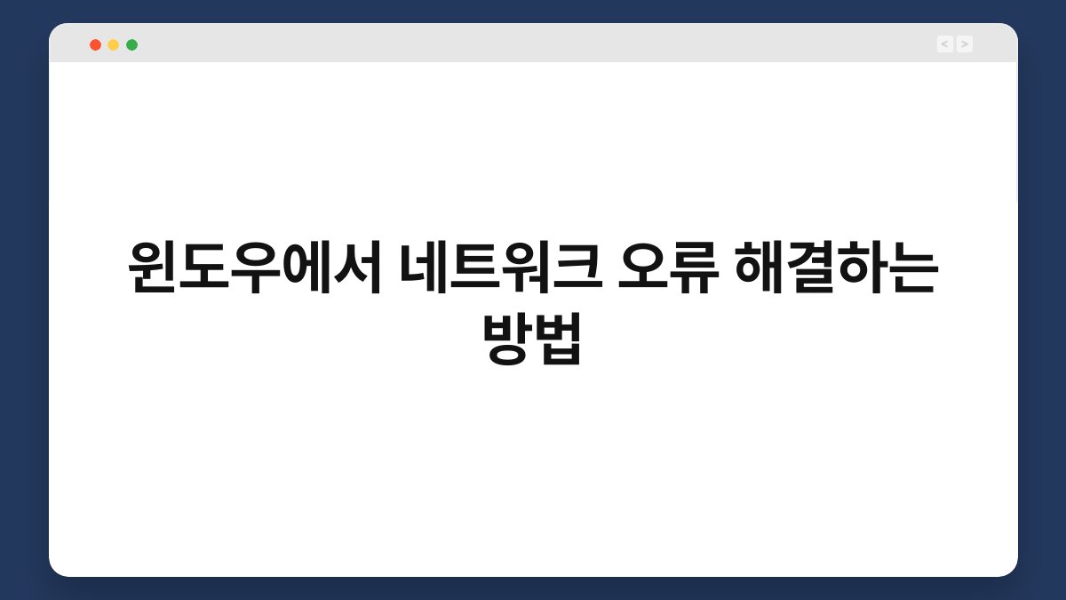 윈도우에서 네트워크 오류는 사용자에게 많은 불편을 초래할 수 있습니다. 특히 인터넷 연결이 끊기거나 느려질 경우, 업무나 여가 활동에 큰 지장을 줄 수 있습니다. 이러한 문제는 다양한 원인으로 발생할 수 있으며, 이를 해결하기 위한 방법도 여러 가지가 있습니다. 따라서 효과적으로 네트워크 오류를 해결하는 방법을 아는 것은 매우 중요합니다. 이 글을 통해 윈도우에서 발생하는 네트워크 오류의 원인과 해결 방법을 자세히 알아보겠습니다.