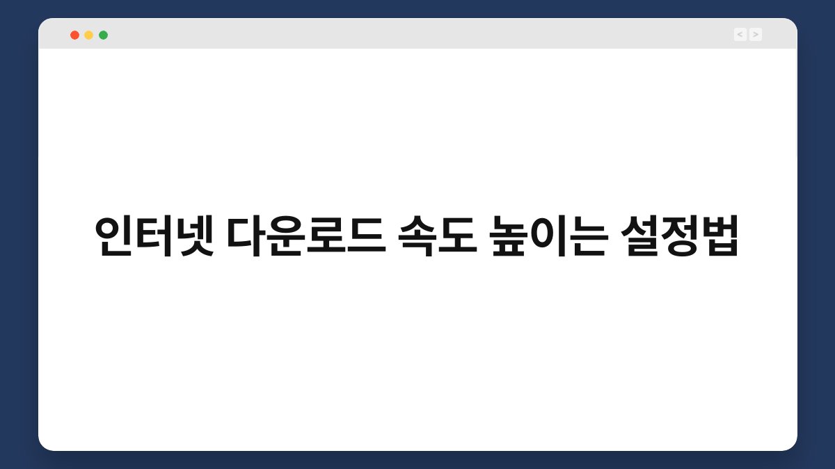 인터넷 다운로드 속도 높이는 설정법은 많은 사람들이 궁금해하는 주제입니다. 빠른 다운로드 속도는 온라인에서 콘텐츠를 소비하는 데 필수적이며, 특히 대용량 파일을 자주 다운로드하는 사용자에게는 더욱 중요합니다. 그러나 불안정한 인터넷 속도는 종종 스트레스를 유발하고, 작업 효율성을 저하시킬 수 있습니다. 이 글을 통해 인터넷 다운로드 속도를 높이는 다양한 설정법과 팁을 알아보겠습니다. 이를 통해 속도를 개선하고, 더 쾌적한 인터넷 환경을 만들어 갈 수 있습니다.