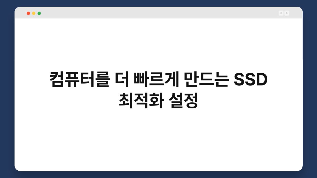 컴퓨터를 더욱 빠르게 만드는 SSD 최적화 설정은 컴퓨터의 성능을 극대화하는 데 중요한 역할을 합니다. SSD(Solid State Drive)는 기존의 HDD(Hard Disk Drive)보다 훨씬 빠른 데이터 전송 속도를 제공하여 시스템 부팅 시간과 프로그램 로딩 시간을 단축시킵니다. 그러나 SSD의 성능을 최대한 활용하기 위해서는 적절한 최적화 설정이 필요합니다. 이 글을 통해 SSD 최적화 설정의 중요성, 방법, 그리고 주의사항 등을 알아볼 수 있습니다.
