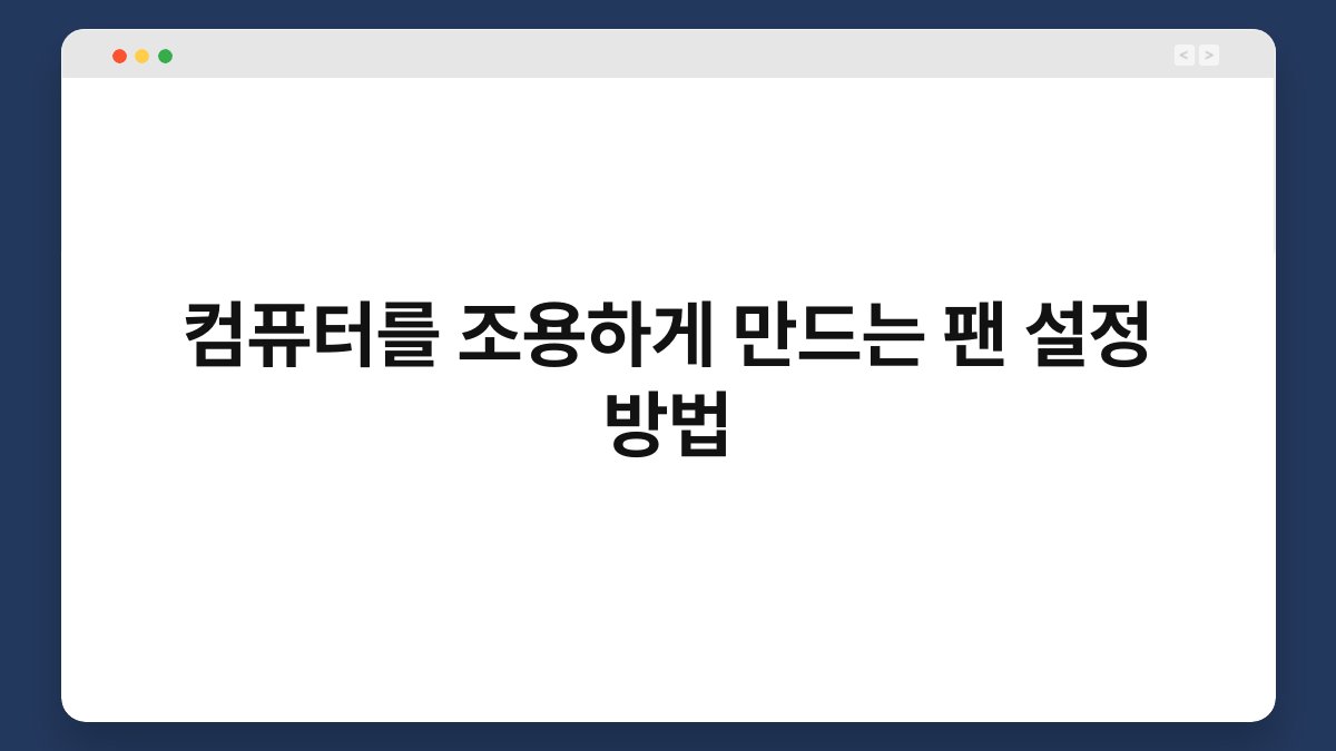 컴퓨터를 사용할 때, 팬 소음이 신경 쓰이는 경우가 많습니다. 특히 조용한 환경에서 작업하거나 영화를 감상할 때, 팬 소음은 집중력을 방해할 수 있습니다. 이를 해결하기 위한 방법 중 하나가 바로 팬 설정을 조정하는 것입니다. 팬 설정을 통해 소음을 줄이면 컴퓨터 사용이 훨씬 쾌적해질 수 있습니다. 이 글을 읽으면 팬 속도 조절, 소프트웨어 활용법, 하드웨어 점검 방법 등을 알게 될 것입니다.