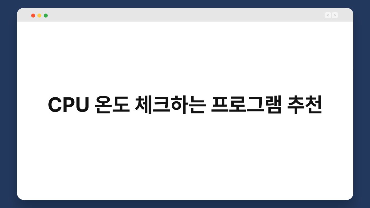 CPU 온도 체크하는 프로그램에는 여러 가지가 있습니다. 각 프로그램은 고유의 기능과 장점을 가지고 있어, 사용자의 필요에 따라 선택할 수 있습니다. 여러 프로그램 중에서 특히 추천할 만한 몇 가지를 소개해 드리겠습니다.