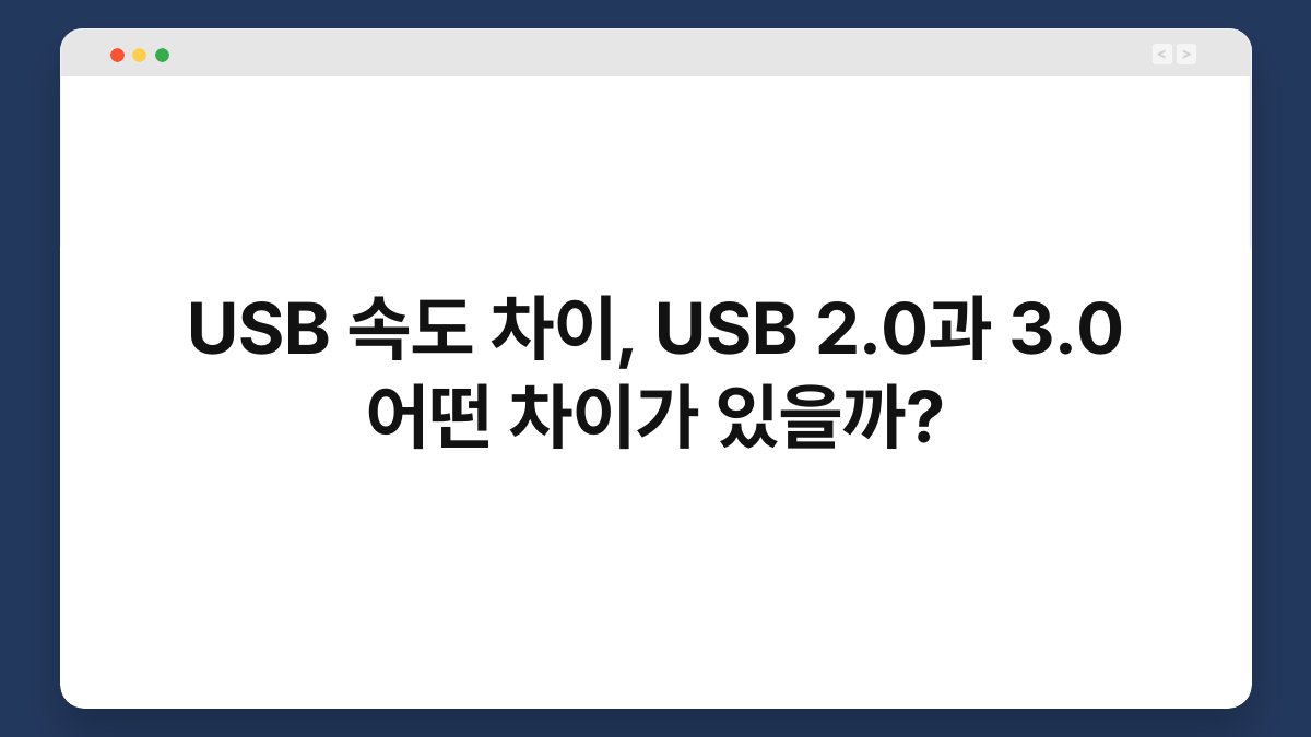 USB 속도 차이는 데이터 전송 기술의 발전을 반영하는 중요한 요소입니다. USB 2.0과 3.0은 각각 다른 속도와 기능을 제공하여 사용자의 경험에 큰 영향을 미칩니다. USB 2.0은 최대 480Mbps의 속도를 지원하지만, USB 3.0은 최대 5Gbps에 달하는 빠른 전송 속도를 자랑합니다. 이러한 차이는 파일 전송 시 소요되는 시간과 장치의 성능에 직접적인 영향을 미치기 때문에, 어떤 USB를 선택할지 고민하는 것이 중요합니다. 이 글을 통해 USB 2.0과 3.0의 차이점, 각각의 장단점, 그리고 실제 사용 사례를 알게 될 것입니다.